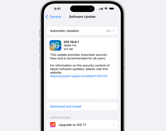 备份数据后,就该将旧 iPhone 上的 iOS 更新到最新版本了,这对于使用“快速启动”将数据传输到新 iPhone 至关重要。在某些情况下,由于 iOS 版本太旧,传输会失败。