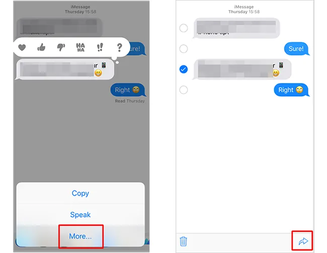 另一种复制重要短信的简单方法是转发。当您只需要将几条关键短信传输到其他设备或电子邮件帐户时,这种方法尤其有用。