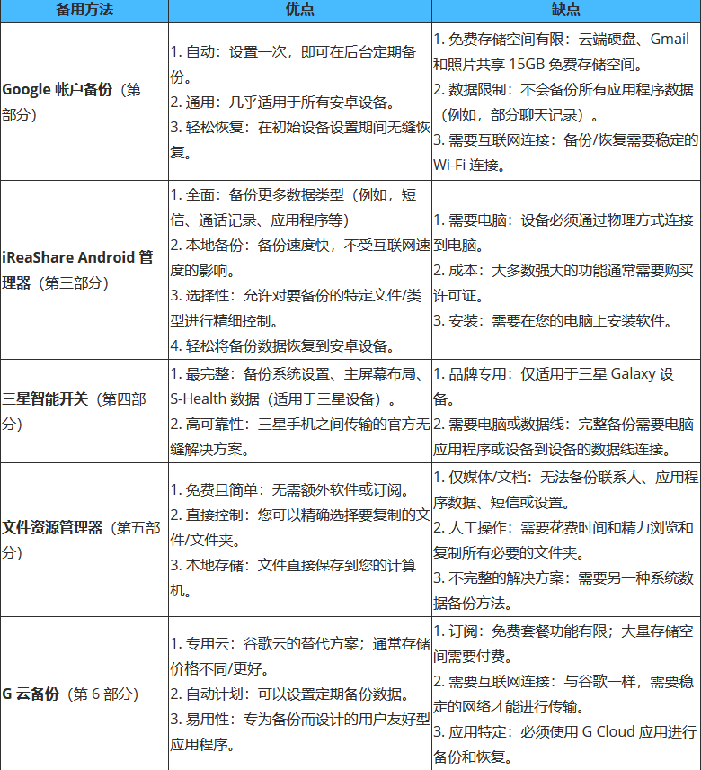 在您按下“恢复出厂设置”按钮之前,请花时间选择并执行最适合您需求的备份方法,无论是简单便捷的 Google 备份,还是功能全面的iReaShare Android Manager等。通过备份,您可以确保您的设备干净快速,同时您的重要数据也会安全存储,随时可以恢复。