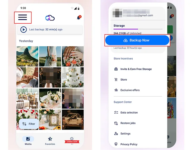 从 Google Play 商店下载并安装 G Cloud Backup 应用。然后注册或登录您的帐户。