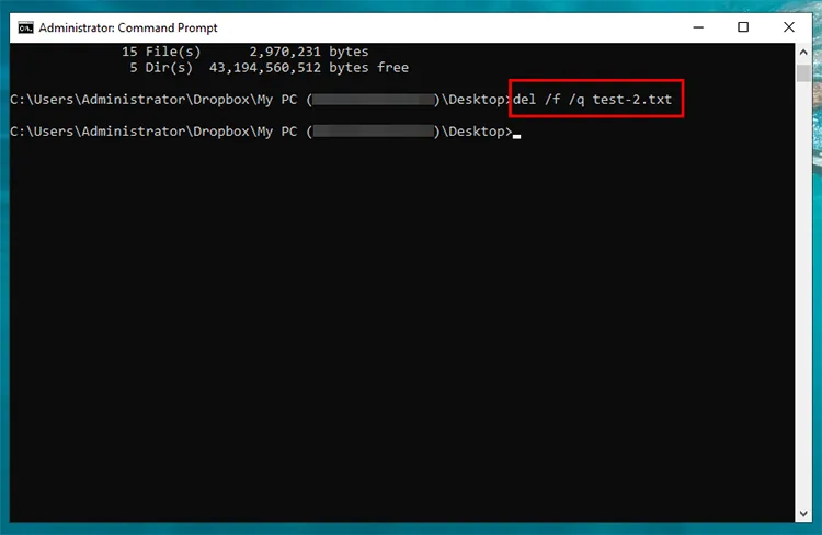 使用cd (更改目录)命令移动到包含该文件的文件夹,例如, cd C:\Users\YourName\Desktop\FilesToDelete 。