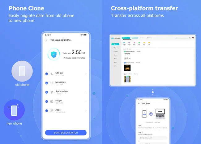 EasyShare是vivo官方推出的数据迁移工具,类似于三星的Smart Switch。它专为将数据从旧设备(包括iPhone)迁移到新的vivo智能手机而优化。
