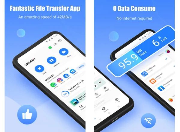 - SHAREit 和 Xender 使用本地 Wi-Fi(不使用数据流量),因此您不需要移动数据连接。