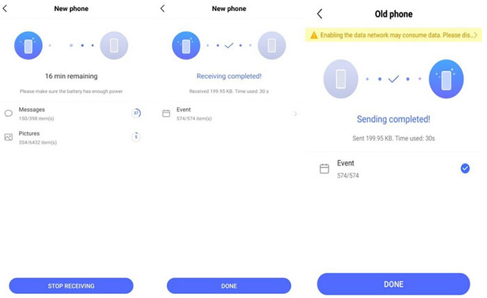 - 在目标手机上点击“接受并恢复”完成过程。