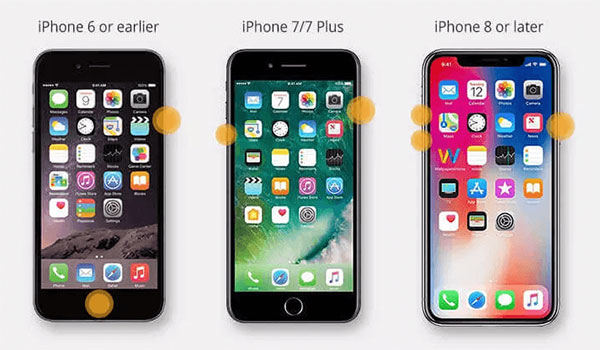 - iPhone 7/7 Plus:同时按住电源键和音量减键,直到出现苹果标志。