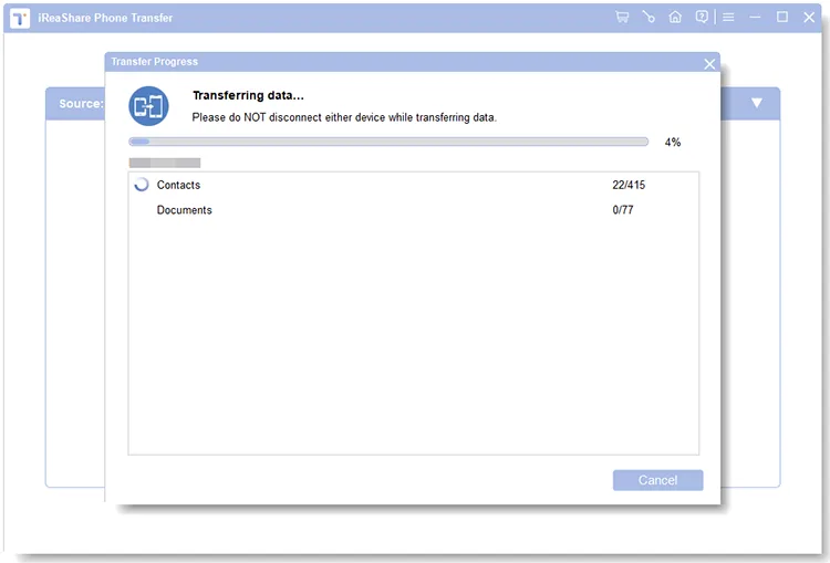 如果您想在设置完成后将数据从安卓手机传输到 iPhone, iReaShare Phone Transfer将是一个不错的选择。它可以一次性 传输您的联系人和文档,而且无需重置 iPhone。传输的文件不会覆盖您现有的文件。