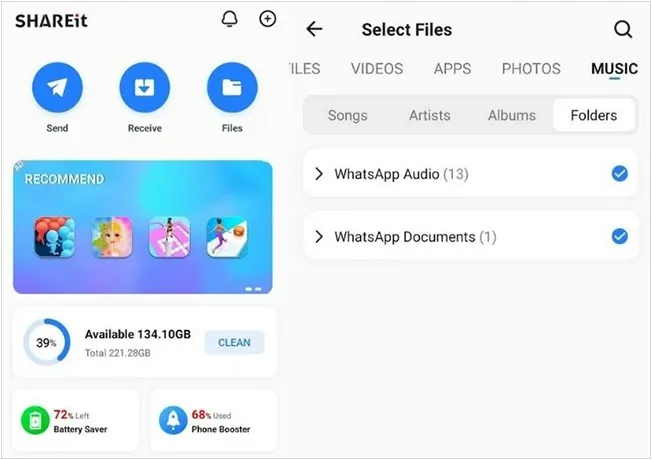 SHAREit 是一款流行的点对点文件共享应用程序,它允许使用本地 Wi-Fi 连接快速跨平台传输文件。对于视频或相册等文件,它非常有效。
