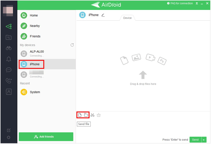 使用 AirDroid 将文件从 PC 发送到 iPhone:
