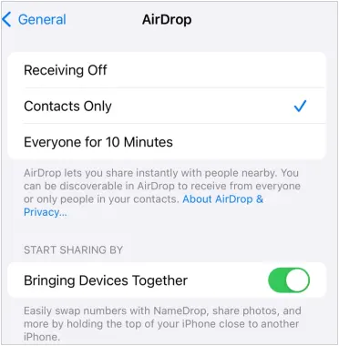 当您将联系人从 iPhone 发送到 Mac 电脑时,可以使用 AirDrop。即使没有网络或 USB 电缆,您也可以通过 AirDrop 共享您的联系人。但是,它允许您一次发送一个联系人,这比使用其他工具效率低。
