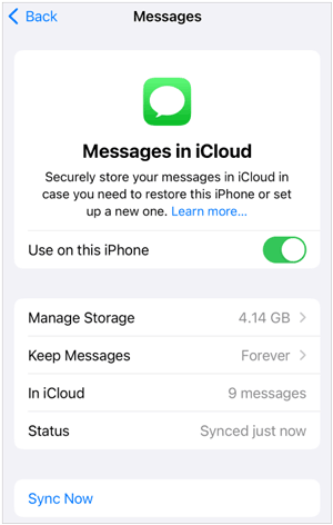 步骤 2:点击“信息”>“设置”>“ iMessage ”,然后选择“启用 iCloud 信息”。