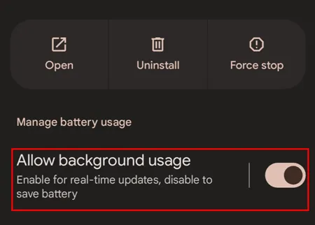 电池优化设置可能会限制应用的后台活动,从而阻止其上传照片。要禁用 Google Photos 的电池优化,请依次进入“设置”>“应用”>“ Google Photos ”>“电池”>“不限制”或“不优化”。在某些安卓手机上,您需要找到该应用,选择“应用电池用量”,然后启用“允许后台使用”。