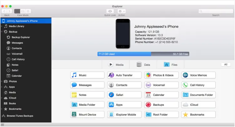 iExplorer(由 Macroplant 开发)是一款经典的桌面电脑与 iPhone 连接工具。虽然它最近没有频繁更新界面,但它仍然是将 iPhone 作为磁盘驱动器“挂载”到电脑上的可靠方式。它允许您浏览短信、语音邮件,甚至应用程序的数据目录。