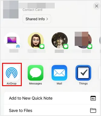 在 iPhone 上,选择一个文件,点击“共享”图标,然后选择“隔空投送”。