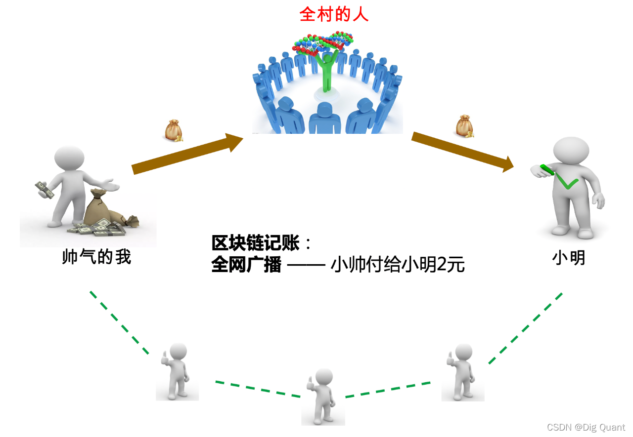 人人记账。电影《三剑客》中有一句著名的台词,“人人为我,我为人人”。众人仿佛被一条链条牵引,大家都有同样的方向,或者说是利益一致。比特币系统也在保证大家公平的同时,人人为系统,系统为人人。比特币的系统中,每个村民手上都维护一本账本,这样即使某个人改了自己的账本,他也无权修改其他村民手上的账本,修改自己的账本相当于掩耳盗铃,别人是不会认可的。