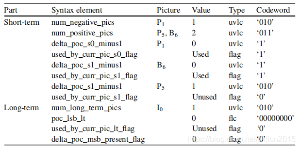 对于RPS中的每幅图像都需要传输三部分信息:POC值、可用性、是长期还是短期参考图像。