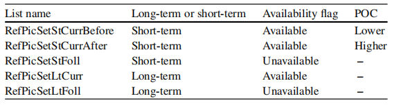 根据RPS中参考图像与当前图像POC间的关系,RPS中参考图像可被分为5个子集。