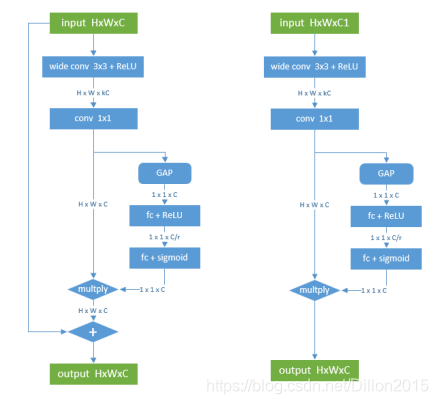 上图值参数k表示第一步wide convolution中的wide ratio。参数r表示SE中的reduce ratio。