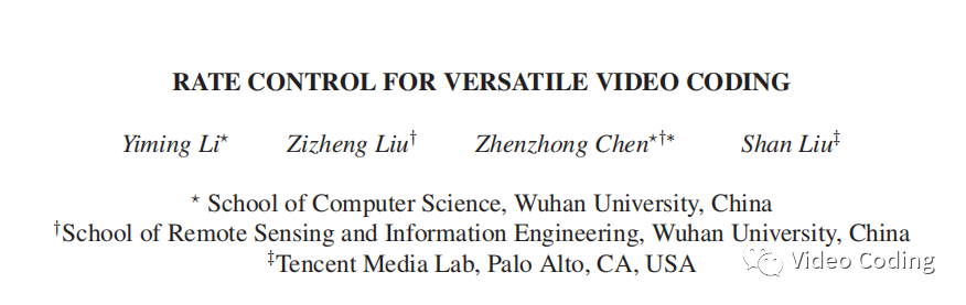 本文内容来自ICIP 2020的文章《RATE CONTROL FOR VERSATILE VIDEO CODING》
