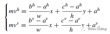 对于当前块中点(x,y),其运动向量mv计算方式如下: