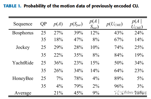 在表1中,不同序列p(A)变化很大,这是因为不同序列运动形式不同。和p(A)相比p(A|S_par)都很小,这表明如果父CU是skip模式,VTM可以跳过大部分AME过程。