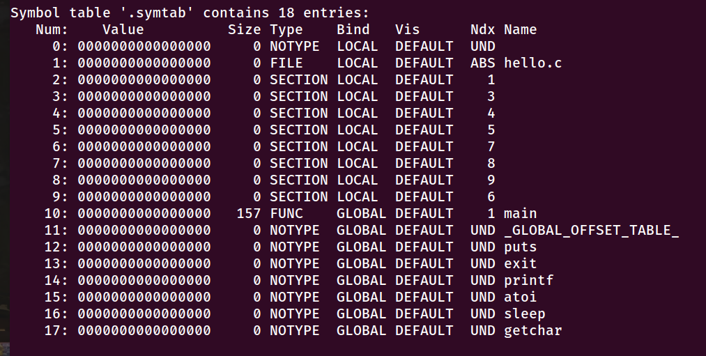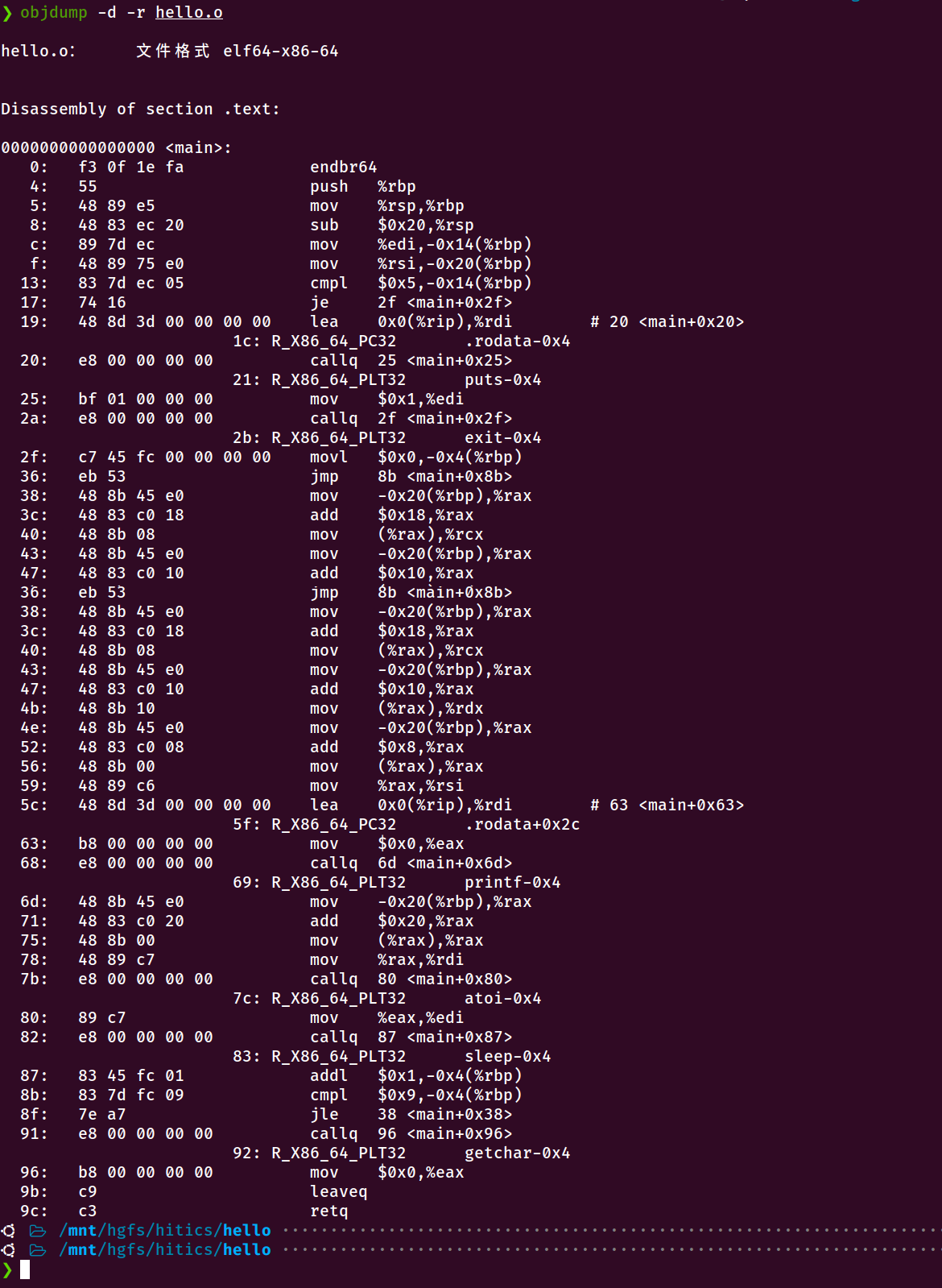 | hello.o | 汇编器生成的可重定位目标文件 |
