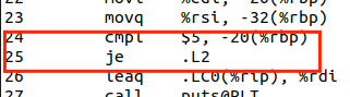 将argc和5比较,je表示相等则执行,即如果argc=5就跳转到L2,否则执行下方命令,实现了控制转移。