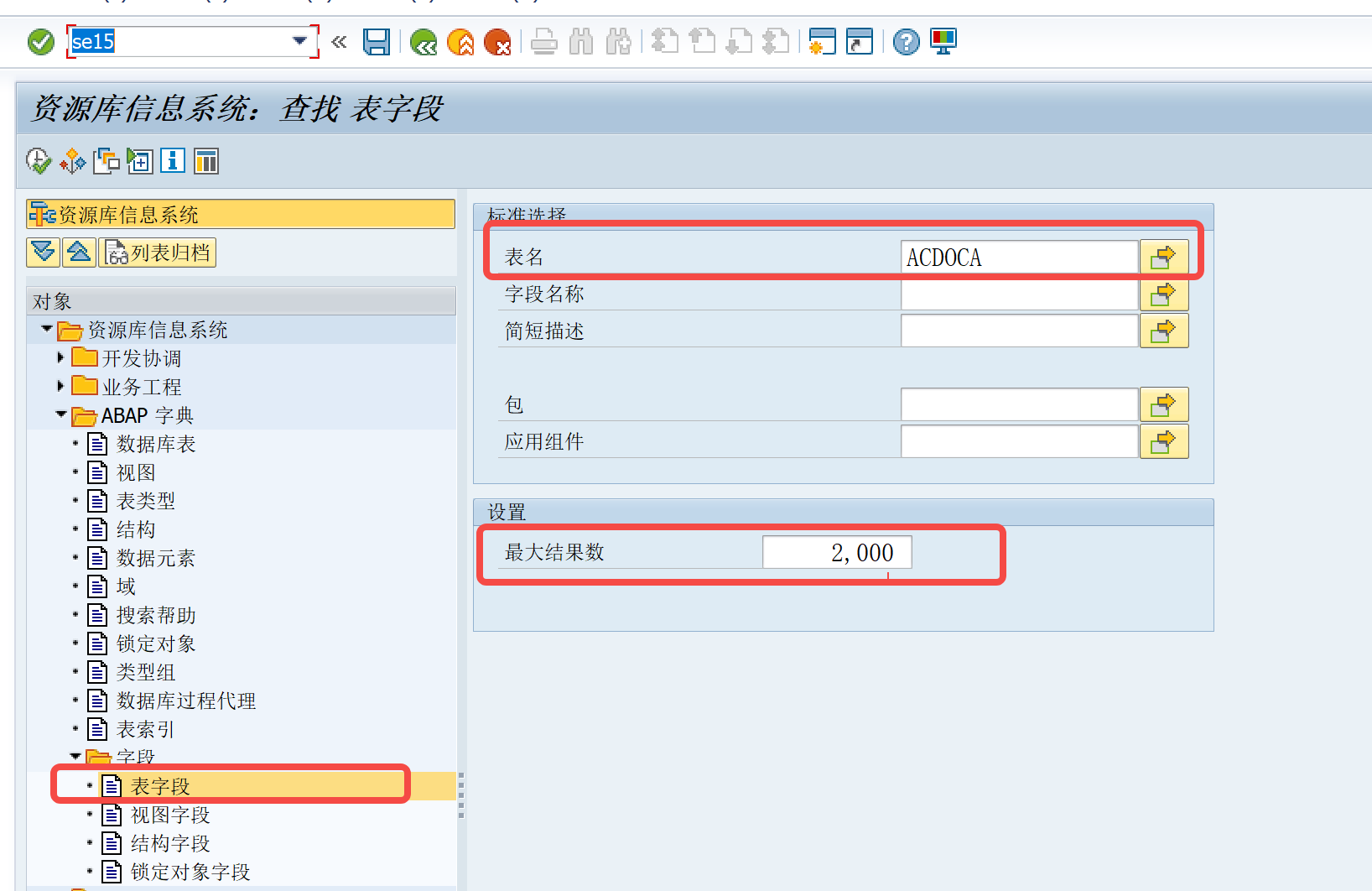 双击“表字段”,输入后台表名称,设置“最大命中数”,建议设置大一些的数字,防止查询的字段显示不全。
