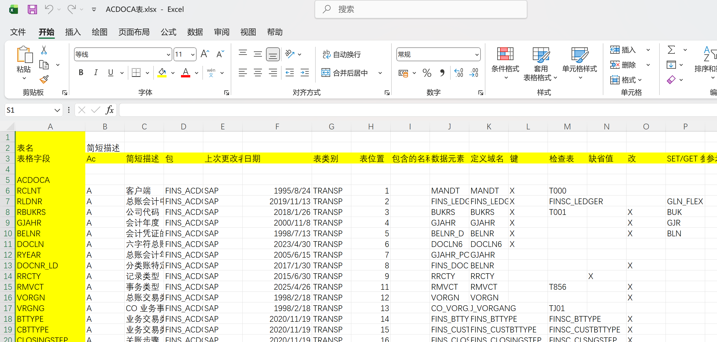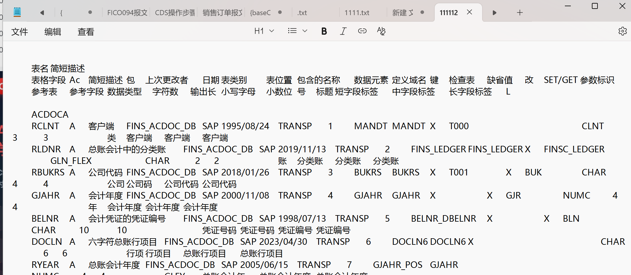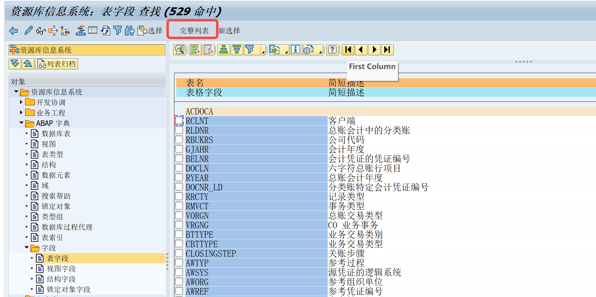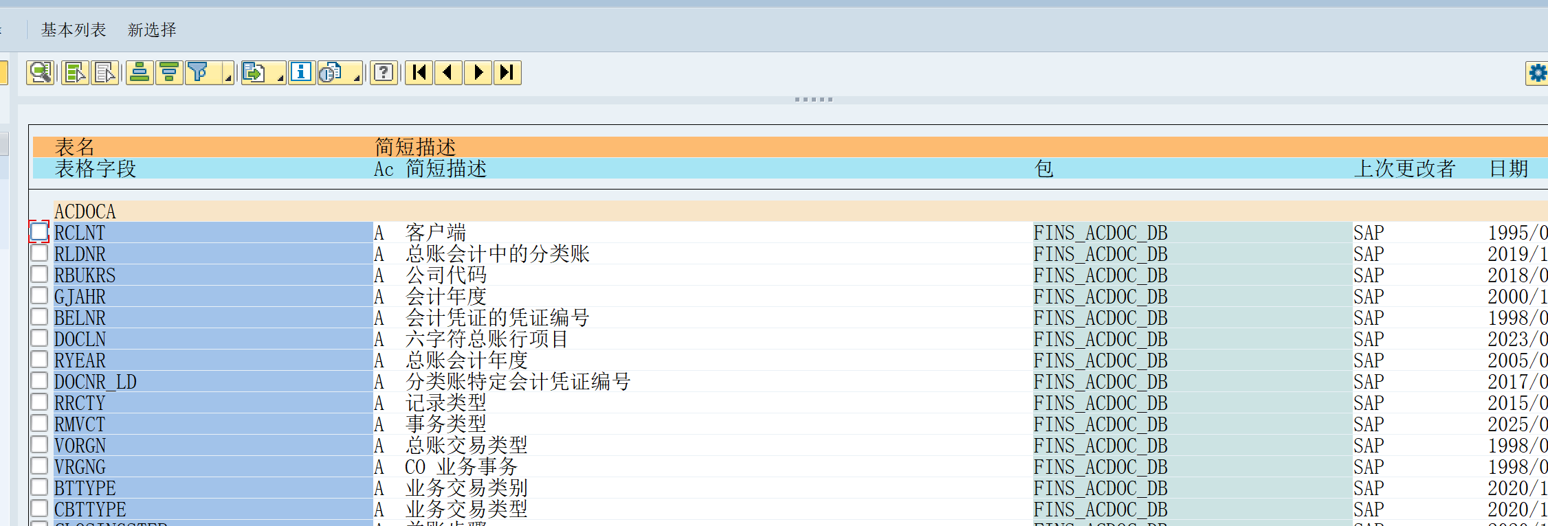 实际业务中,可能需要使用到表字段清单,如ECC升级S4时,比较两个系统中后台表字段差异等。