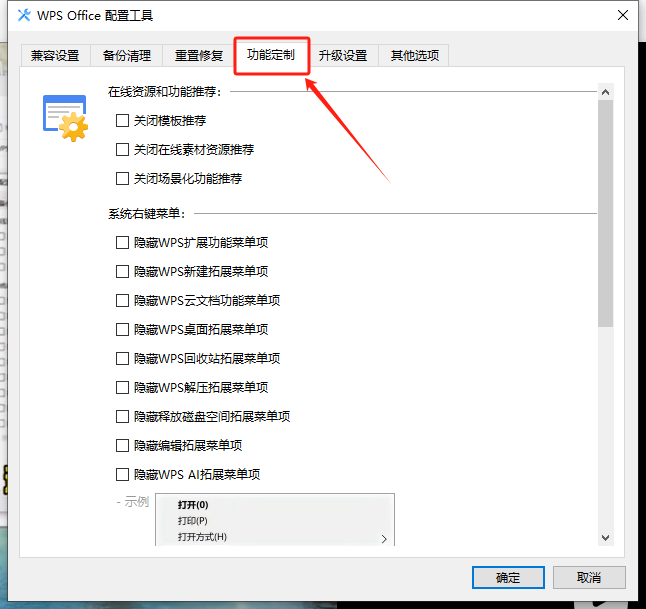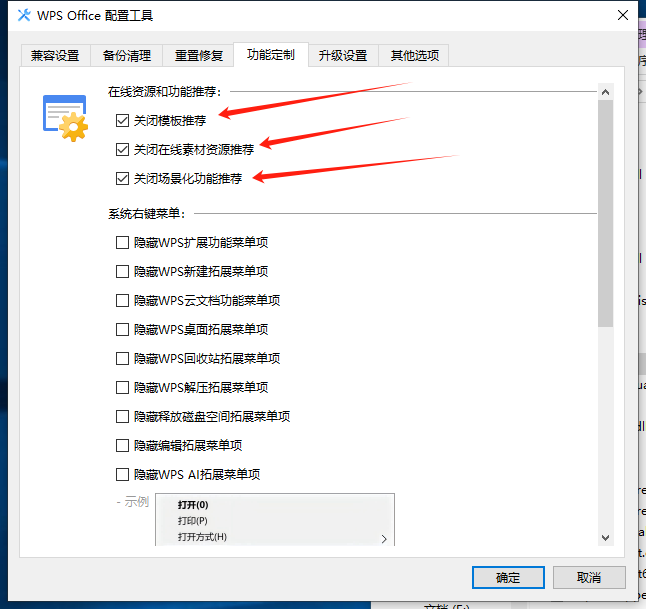7、将这三个单选框全部勾选,点击确定后即可完成