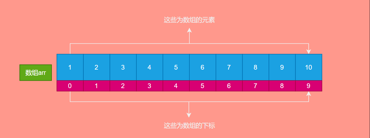 如下图所示,创建一个 有10个元素的数组arr,又因为它的下标是从0开始,所以最后一位元素位置的下标为9。