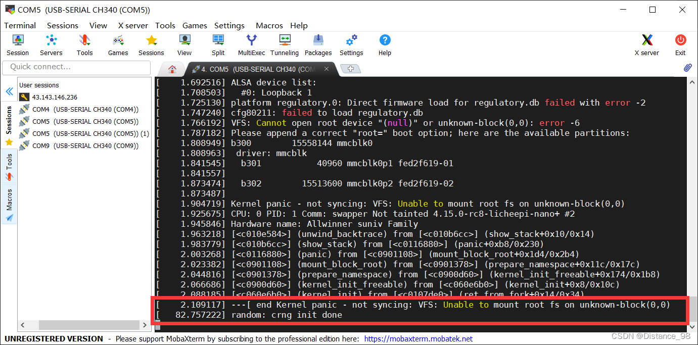 恭喜,镜像和设备树也配置完成了,出现这个的原因是没有挂载根文件系统,我们下一章讲解这个操作