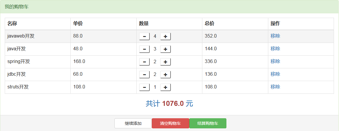 学习java Web会话基础时,设计了一个简易的购物车 。