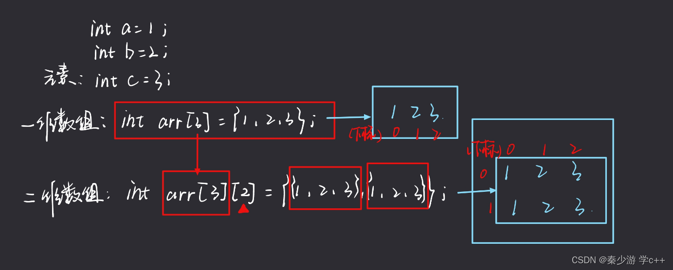本文将会从我当时学习的感受去深入讲解一维、二维数组的创建、使用、在内存中的存储形式