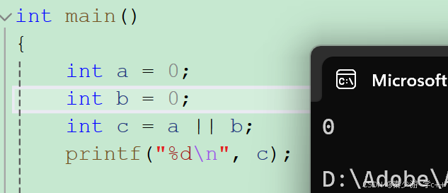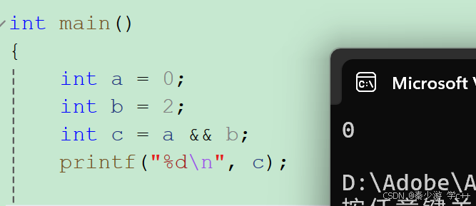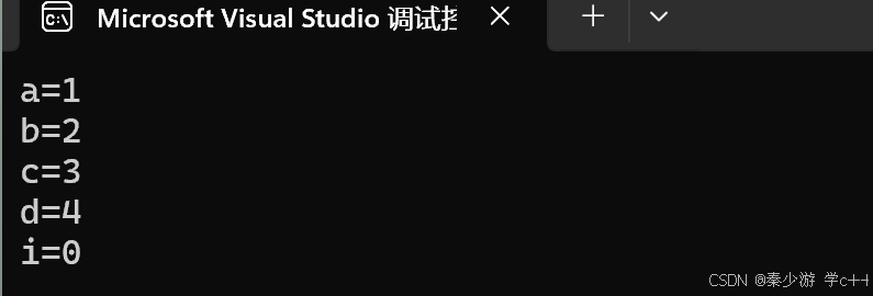 分析:&& 逻辑与--> 只要有一个为假那整个表达式都为假,即后面的表达式没有判断的必要;此处 a++,为后置++,先使用再++,即先&&,再让a自增;而a = 0; 已然为假,所以后面的 ++b、d++ 也就不参与计算了;故而 i = 0 ; a = 1; b = 2; c = 3; d = 4;