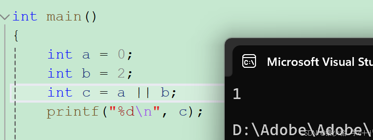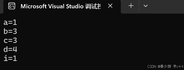 分析:|| 逻辑或 --> 只要有一个为真,整个表达式便是真的;遇到一个为真,就不用再去判断后面表达式的真假;a++;为后置++,先使用再++,即先&& 而后 a再自增;此处为假,便继续向下计算,++b,前置++,b先自增而后 b再&&,此处为真;因为|| 逻辑或,只要有过一个为真,整个表达式便为真,所以后面的 d++就没有计算的必要了;故而 i = 1 ; a = 1 ; b = 3 ; c = 3; d = 4;