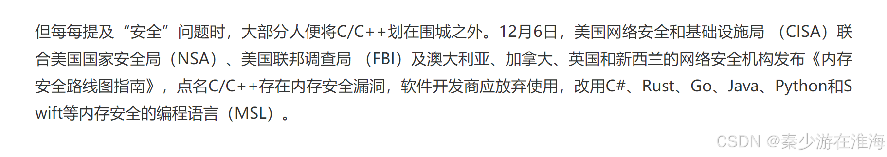 Q1:美国国家安全局建议从 C/C++切换到内存安全语言: