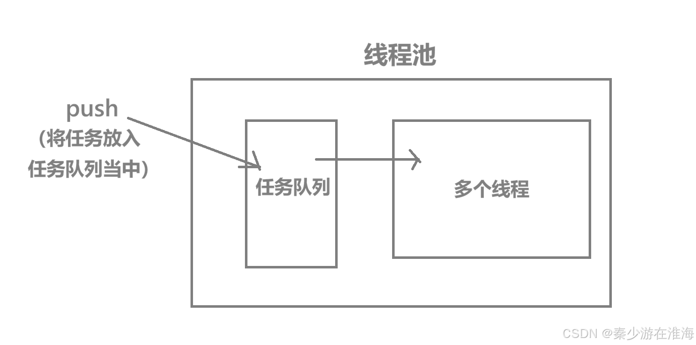 生产者:push() 提交任务、消费者:工作线程 entry() 取任务执行