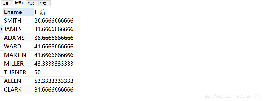 select Ename, (sal/30)as 日薪 from EMP ORDER BY 日薪