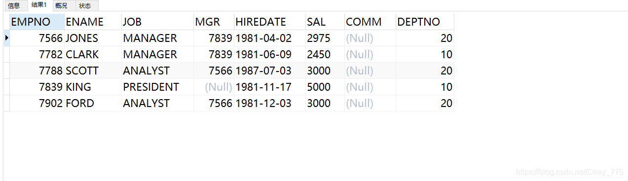 INSERT INTO EMP VALUES(7902,'FORD','ANALYST',7566,'1981-12-03',3000,NULL,20);