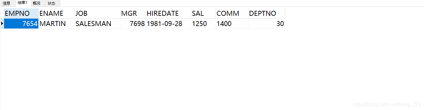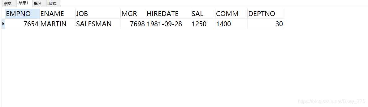 INSERT INTO EMP VALUES(7654,'MARTIN','SALESMAN',7698,'1981-09-28',1250,1400,30);