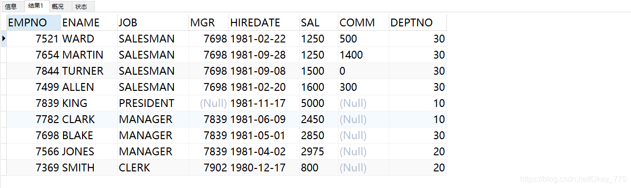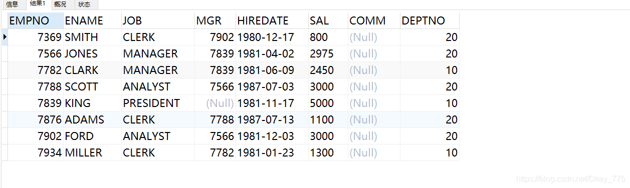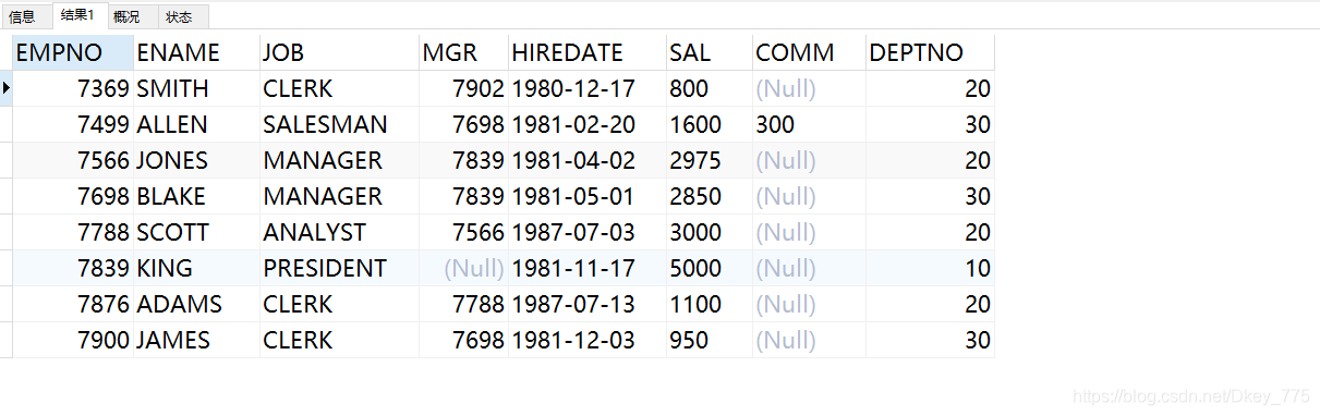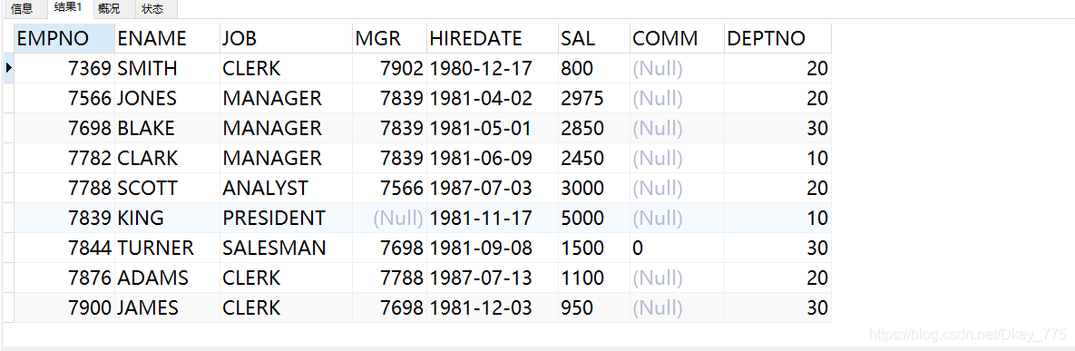 INSERT INTO EMP VALUES(7839,'KING','PRESIDENT',NULL,'1981-11-17',5000,NULL,10);