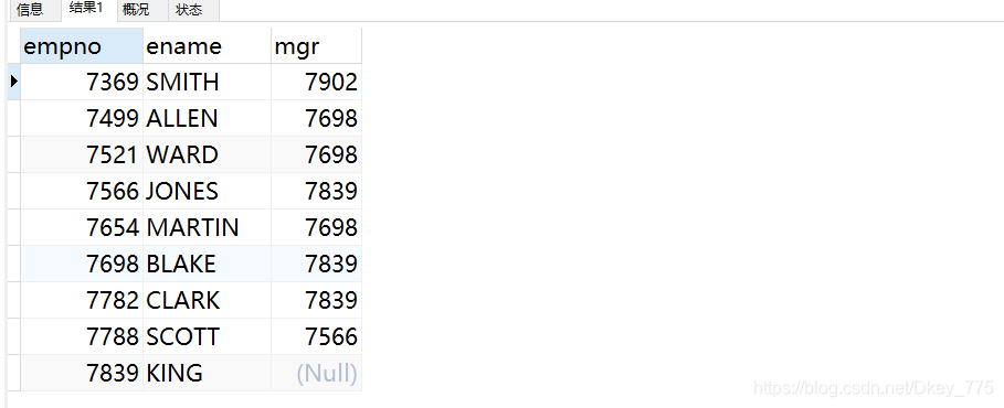 SELECT empno,ename,mgr from EMP;