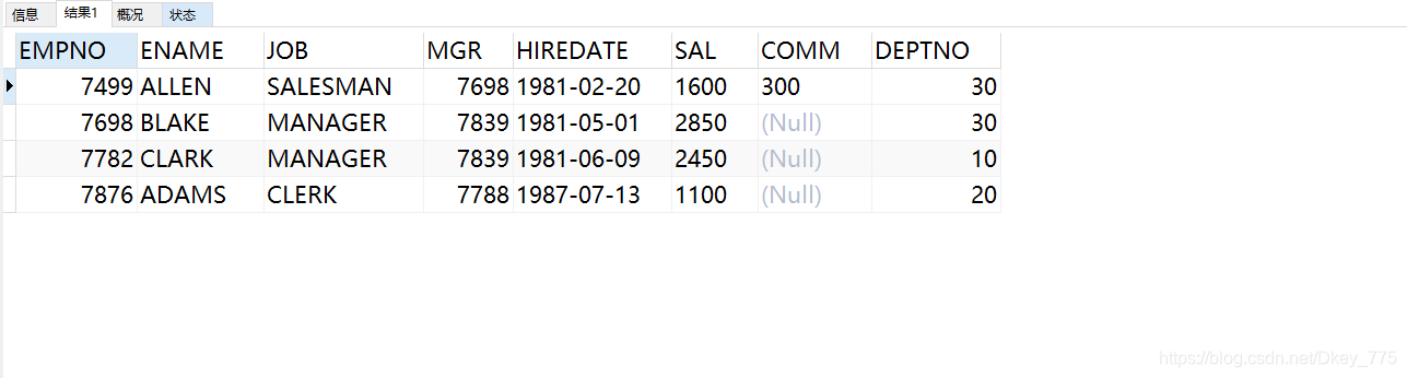 EMPNO int PRIMARY KEY, #员工编号