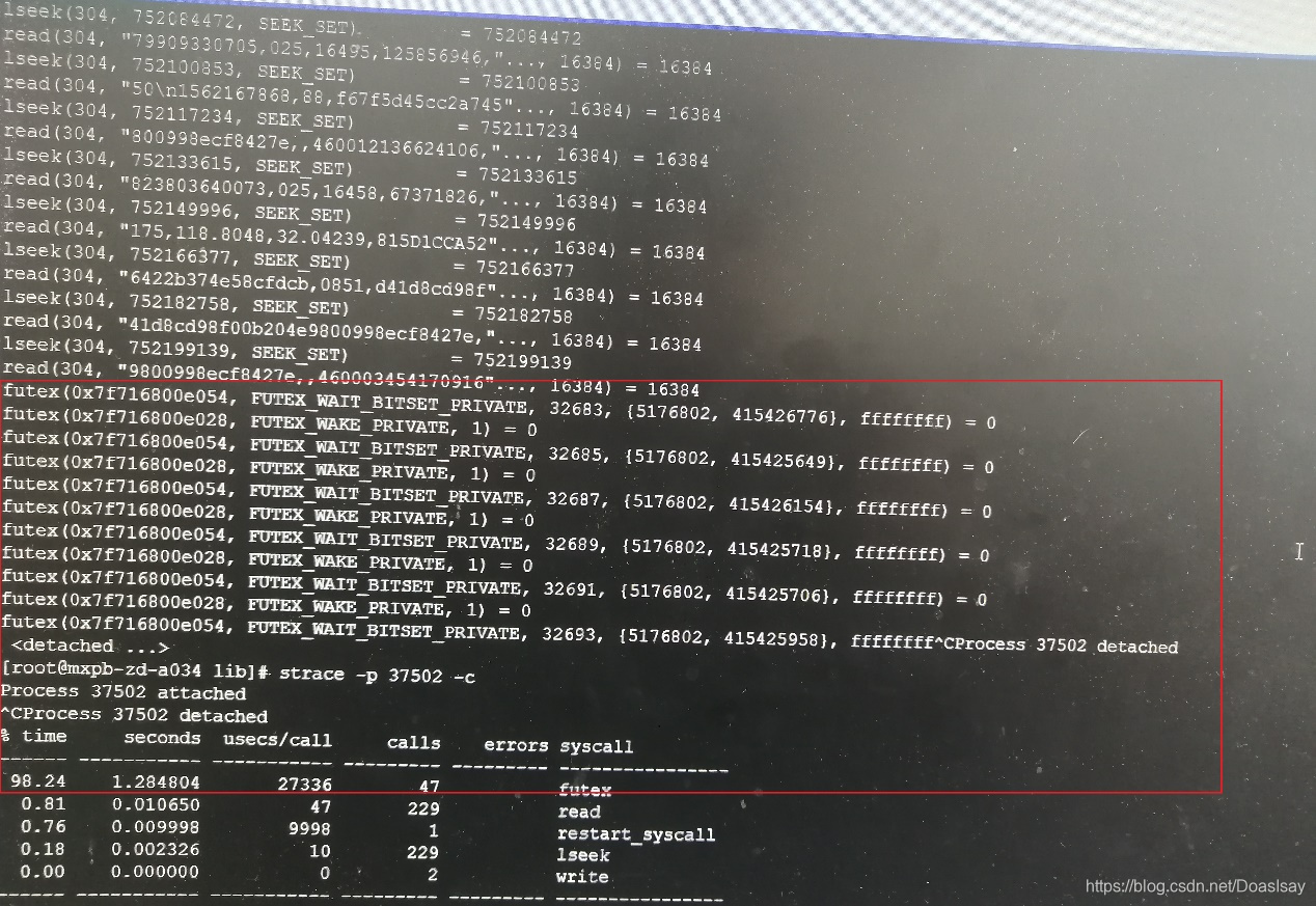咱们strace -p 37521看下还能不能再发现点什么