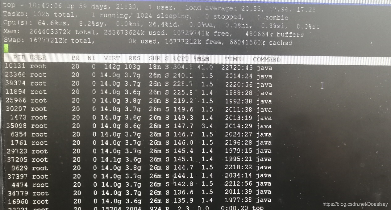 服务器一切正常,swap为0,iowait为0,cpu使用率也不是很高,对不起我根本没看网络,咱万兆网卡还是光纤局域网啊,如果负载比较高还要用iostat vmstat dstat iotop iftop netstat lsof等命令XJB去查看磁盘,内存,网络的具体情况