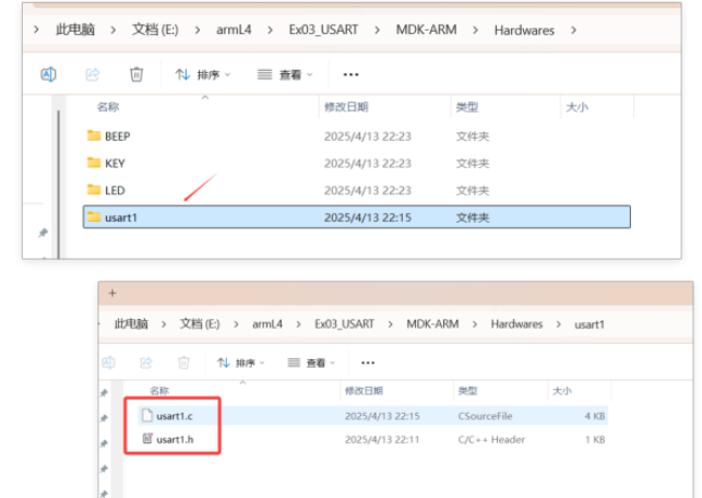 1.在项目工程文件MDK-RAM文件夹下新建Devices/usart1文件夹