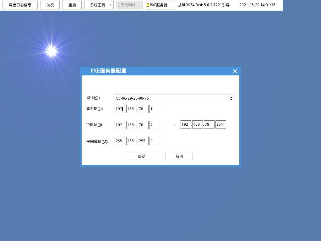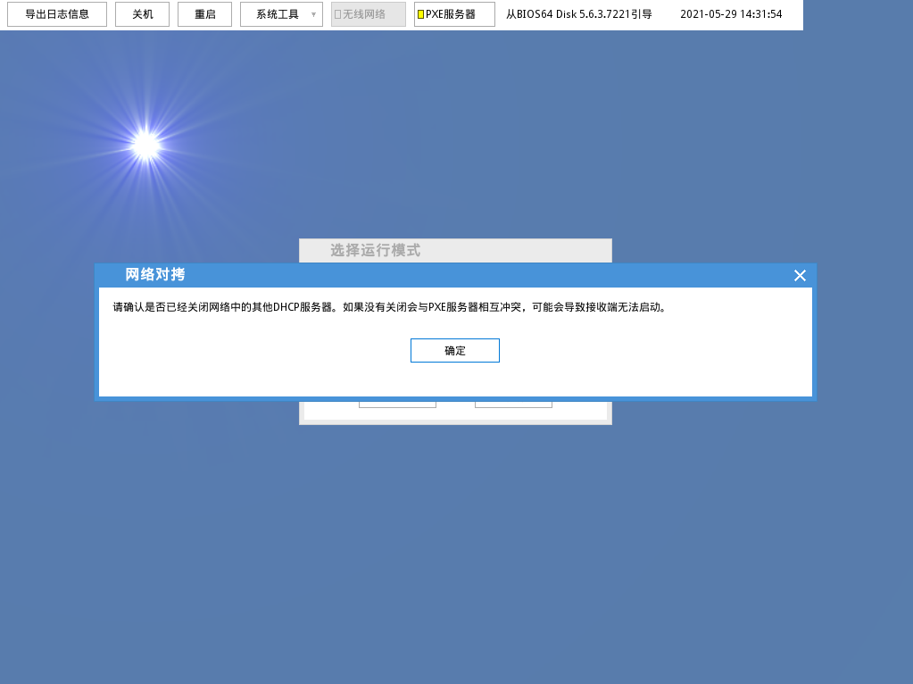 确保没有其他机器也打开PXE 服务器,点击确定: