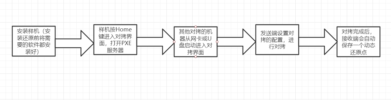 第一次对拷:(说明:只需做好一台样机并装好被控端软件,其他电脑没有系统也可以对拷。)