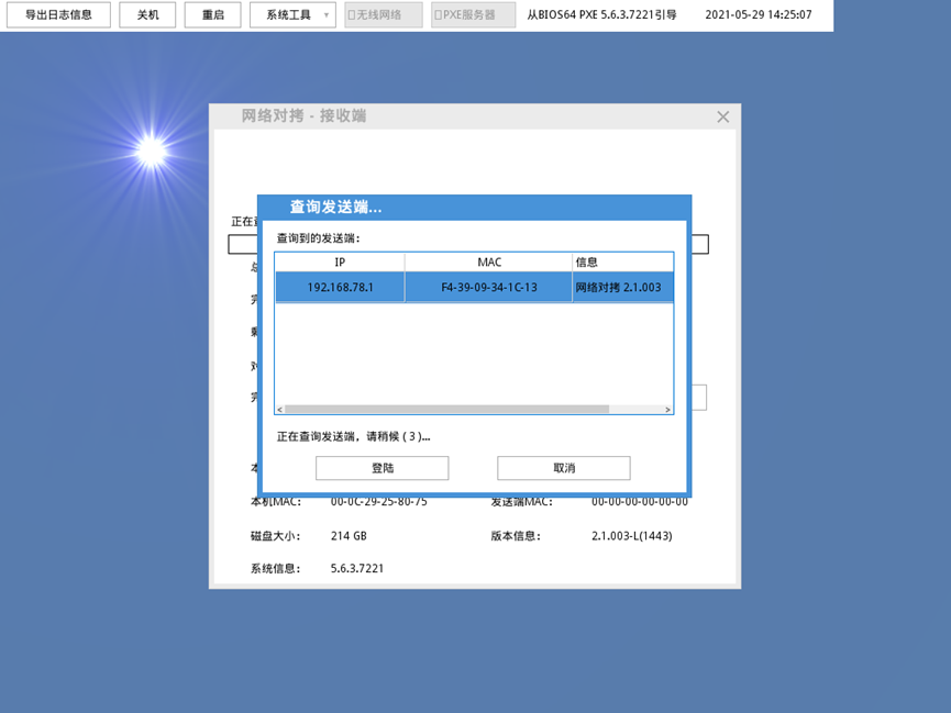 5.同时,接收端开始搜索并登录发送端,如图所示: