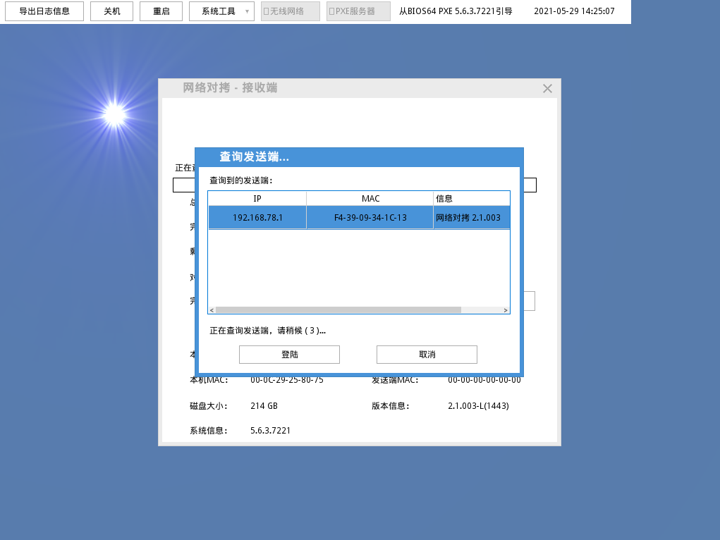 请查看执行增量对拷的发送端,发送端将在倒数计时120秒内接收网路内所有接收端,如图: